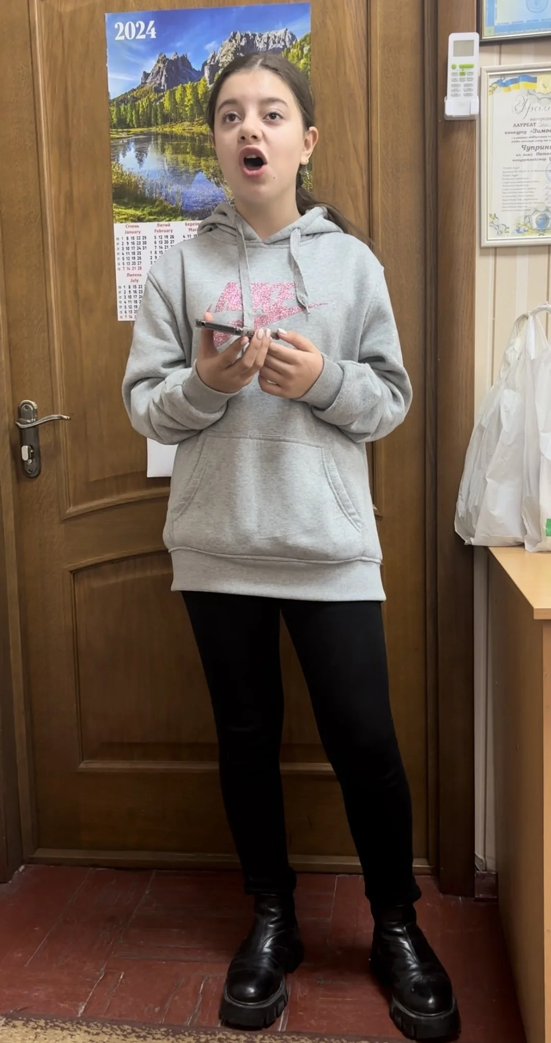 Anastasia Molnar, age 11, singing “Viburnum.” Anastasia, her parents and two siblings have been internally displaced after russians destroyed their home in occupied Ukraine.